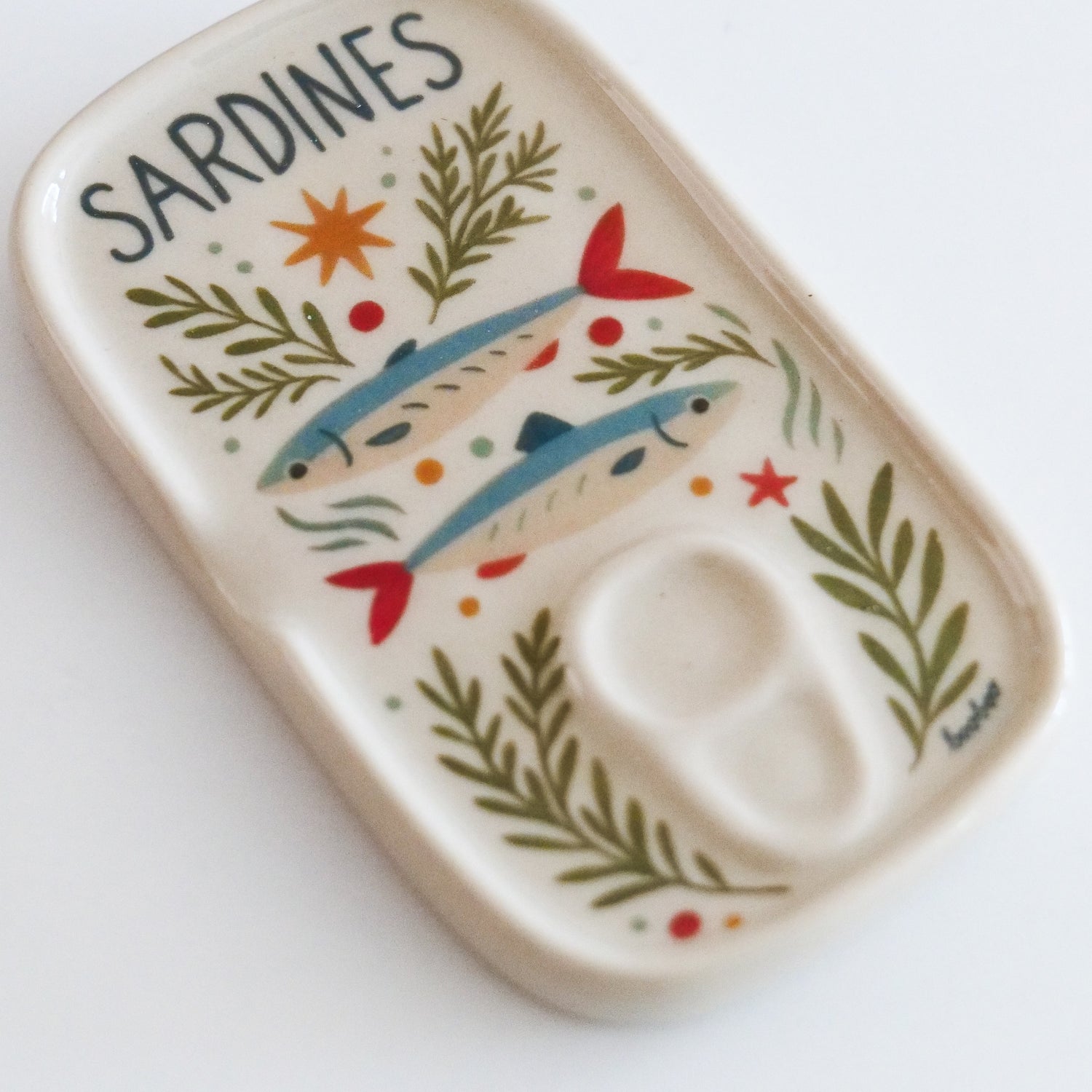 A ceramic sardine can spoon rest, made to sit by your stove and catch every drip ✨ cute, practical, and a little nostalgic.