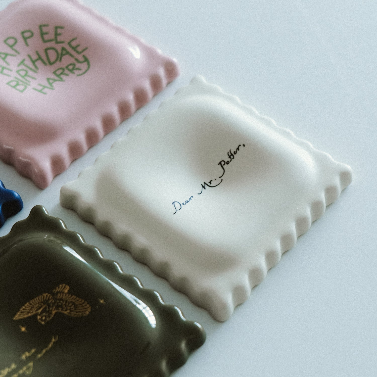 This is a set of four ravioli spoon rests, all handmade in ceramic and inspired by the Harry's world.
