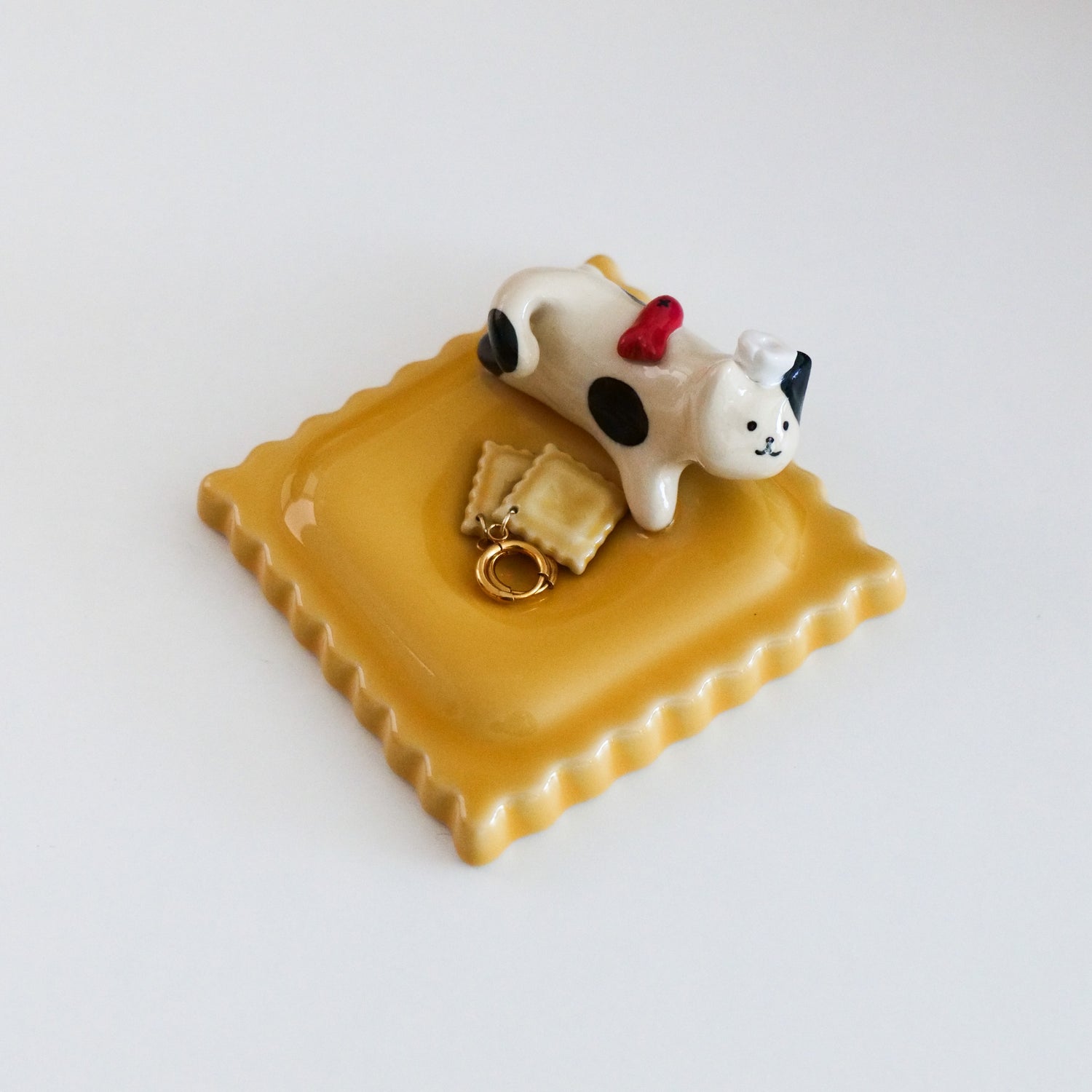 A little stretching kitty on a ravioli cloud 😸🤍 the cutest tiny keeper for your rings and everyday treasures.