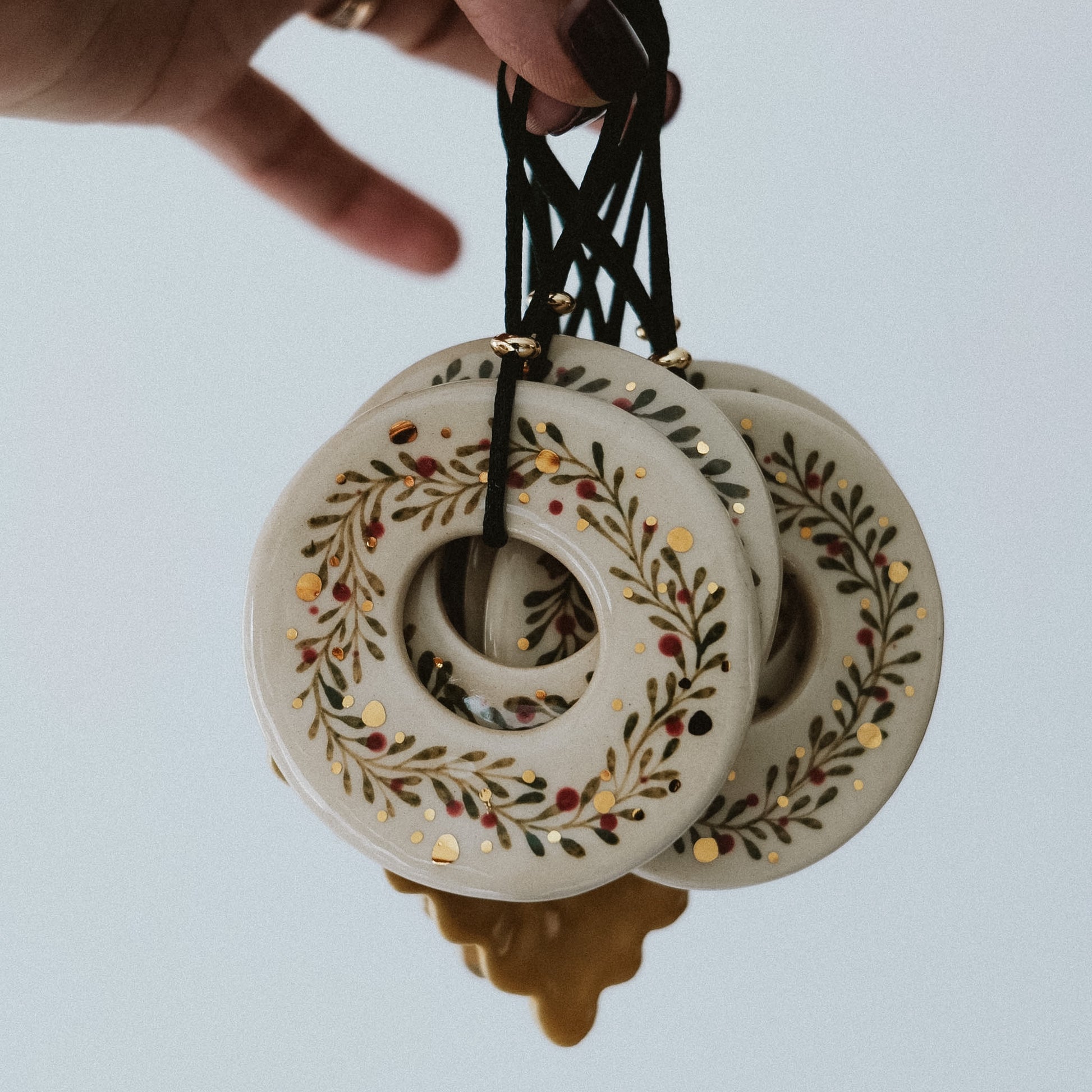 Each ceramic ravioli is shaped, glazed, and finished with a touch of pearl luster, giving it that soft iridescent glow that catches the light just right.