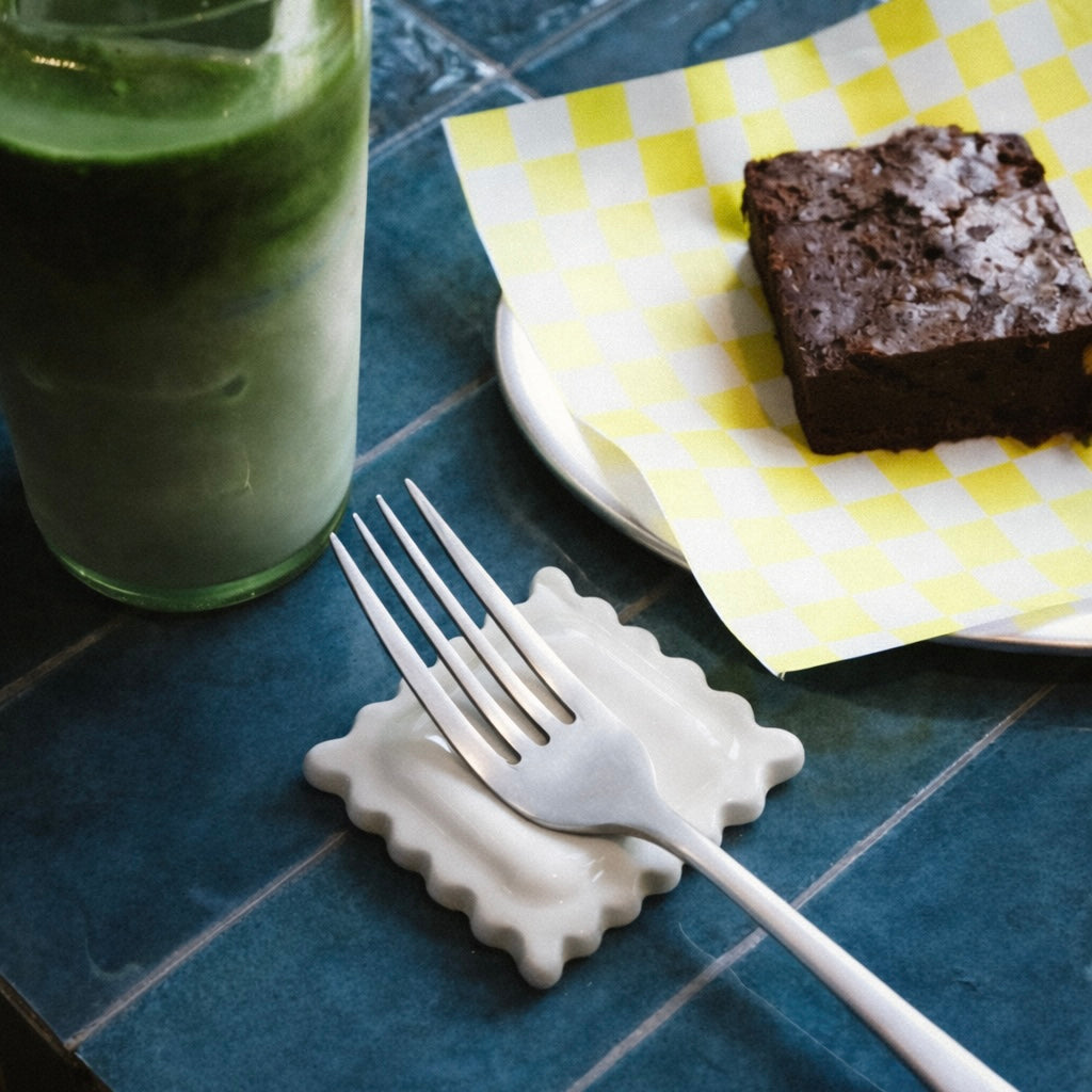 The original small Spoon Rests made for teaspoons and cutlery — now available again in white and yellow.